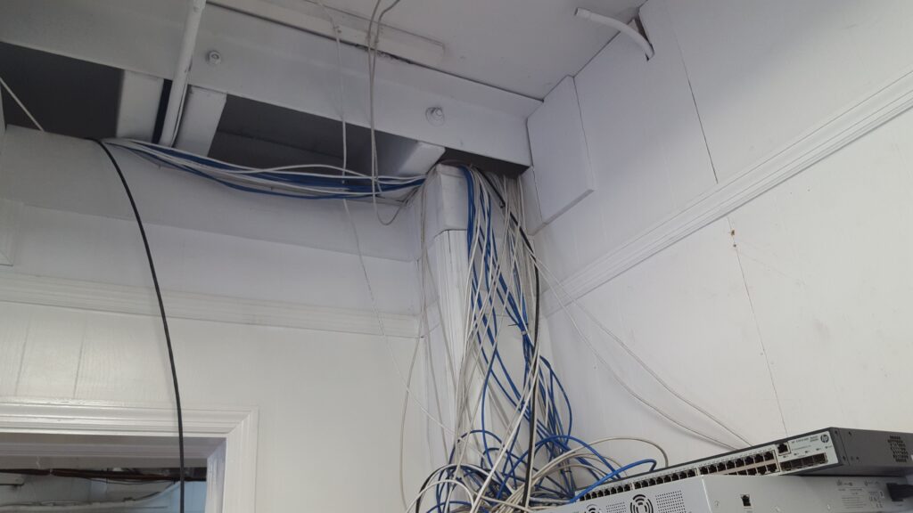When cables are just strung by amateurs or, what we usually find, not maintained carefully by your IT professionals, they can rapidly degenerate into a rat’s nest utter mess that is impossible to work with. This is dangerous and costs much more time and effort anytime a problem occurs or a change has to be made.